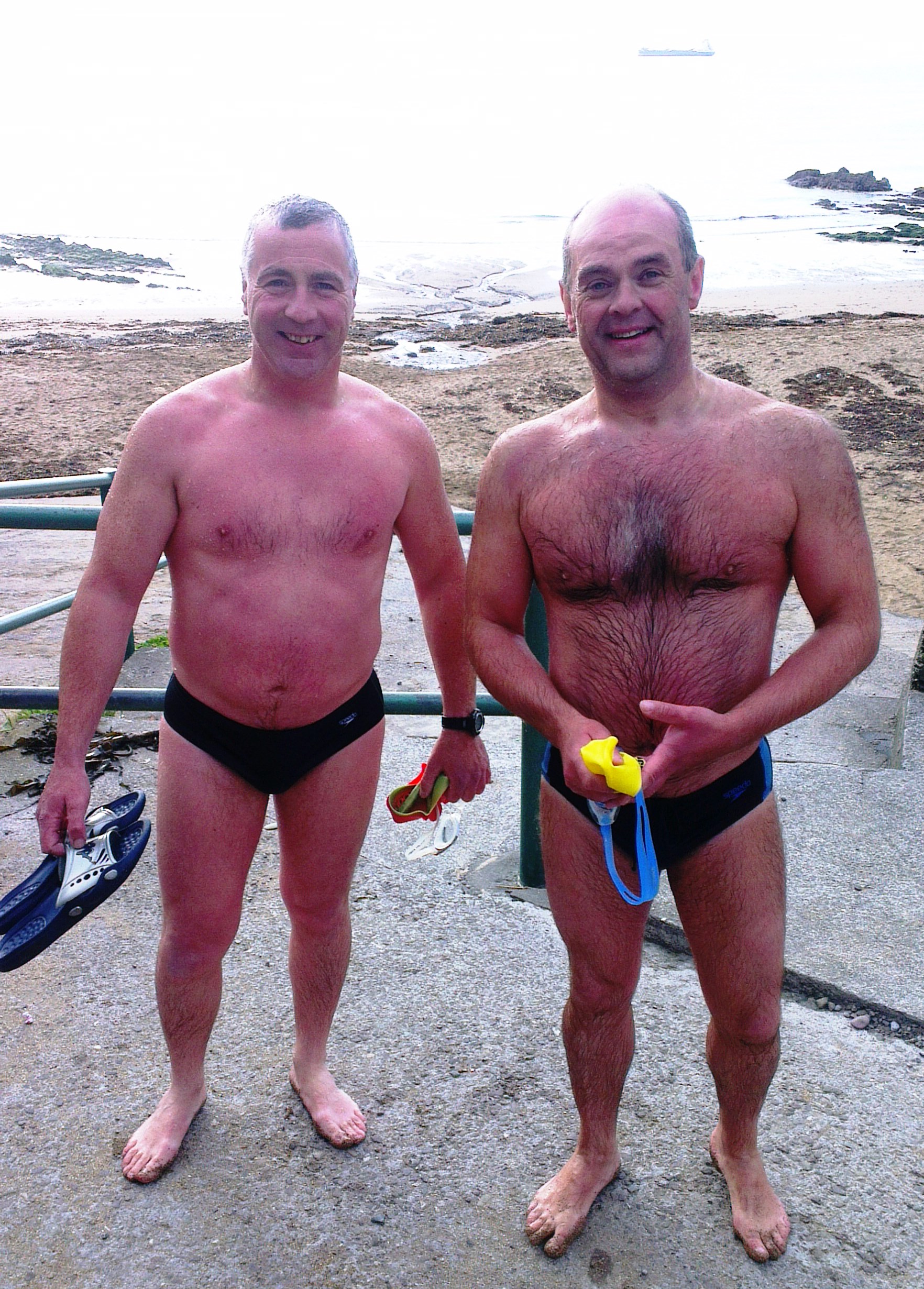 I arrived at Myrtleville at 11:30 to allow the extra time that it takes to get ready for a 6-hour swim, i.e. the time taken to get properly greased up and set up a feeding station. Bernard came down for the start and gave me a very handy bucket with a tyre tube, rope and diving weight – the perfect floating feeding station!