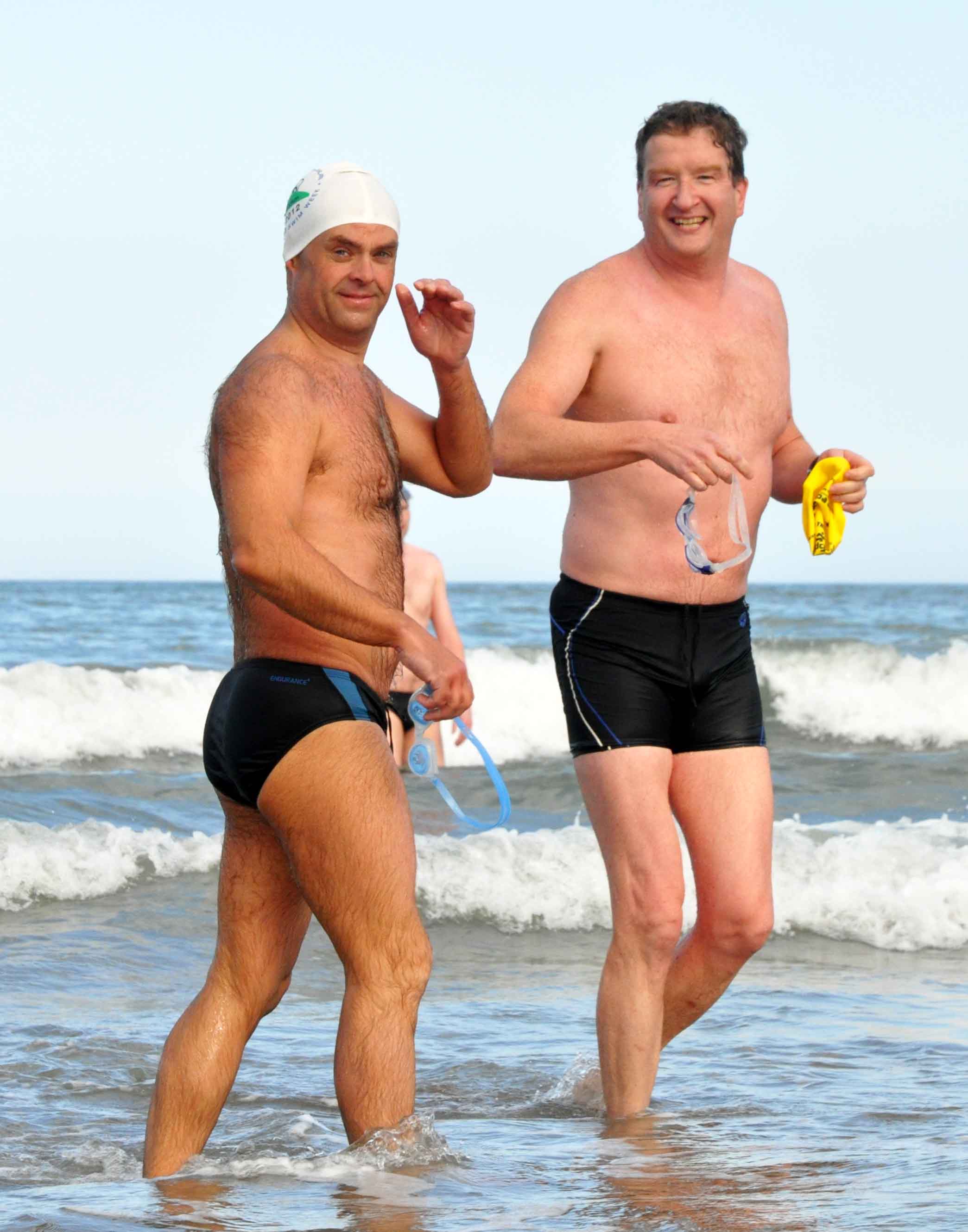 I eventually found the feeding station and took a few gulps of a Sponser carbohydrate (with electrolytes) drink. Keeping the feed as short as possible, I headed towards Fountainstown again with Bernard. I turned back after about 25 minutes as I was meeting Gábor in Myrtleville at 14:00. When I got there, I met Maeve finishing her swim and spotted Gábor coming down the beach. While he was swimming out, I took some of my High5 4:1 drink for a bit of protein as 2 hours was my longest open water swim this year and stuffed another gel down the back of my togs. I was starting to feel a bit cold at this stage but knew that I’d be alright after picking up the pace a little to stay with Gábor.