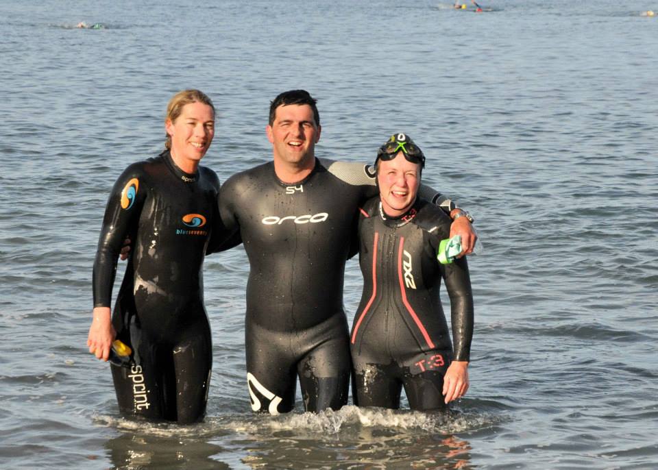 On Bernard’s advice, we first headed for Fountainstown. My goggles were fogging up all the way there, but they always settle after about half an hour. It took about 35 minutes to get to Fountainstown, at which point I took an SiS gel – I’d never taken a gel before so wasn’t sure how my stomach would take it, but it went down well and it was handy to be able to have the gels stuffed into the back of my togs! The water felt much warmer in Fountainstown so I was inclined to stay there, but I knew that I had to go back to Myrtleville to get liquid feeds. I headed back (a little faster than I got there as I was going with the wind and had a better line due to clearer goggles) and met Bernard and Damian who were just starting their 3-hour swim.