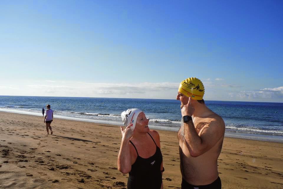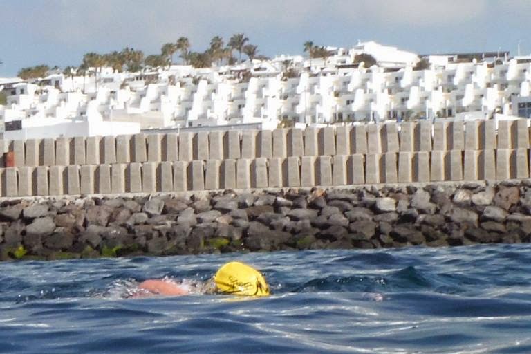 Carmen Burns swimming by the harbour in the Old Town, Puerto Del Carmen.