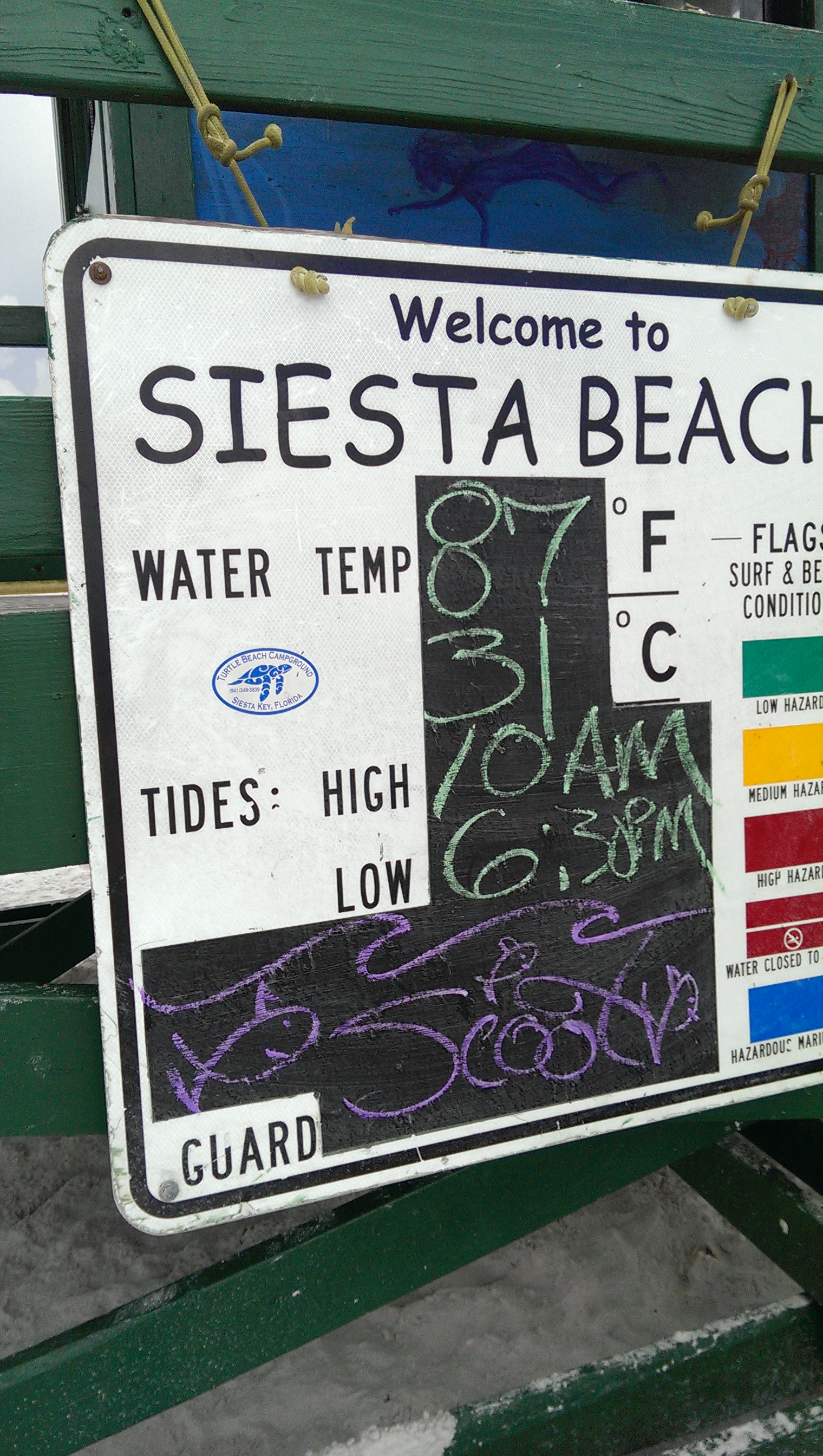 Only 31c in the water on Siesta Beach for Mr. Slowey. Chilly.