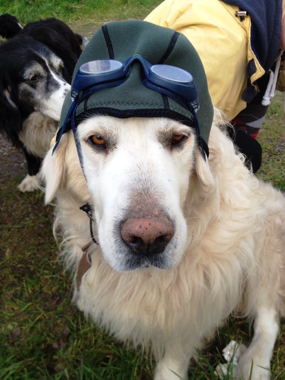 In the car park a woman is walking her Rottweiler, off the lead, and the next thing she sees is “Biggles” and a dog climbing up the river bank. Of course both big powerful dogs immediately challenge each other. Fortunately it develops only into a Mexican-standoff. Completely forgetting my unusual attire I ask her if her dog is “alright?” but, – judging by the expression on her face – maybe she wants to ask me if I am ‘alright’. She seems to have lost her voice, so I get Sailor back in the van and scramble back into the river. In my last glimpse of her she is scurrying away towards the church in Minane, no doubt to light a candle for her sanity or, more appropriately, MINE!