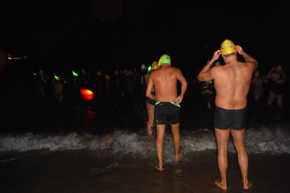 The last few years have seen at least one night swim for small groups of four or five at the most. Last night was the first large scale night swim and one that will likely become an annual event, as everyone loved it. It’s a sign of how popular swimming in Myrtleville has become when you can assemble 31 swimmers – in the dark, lit up like Christmas.