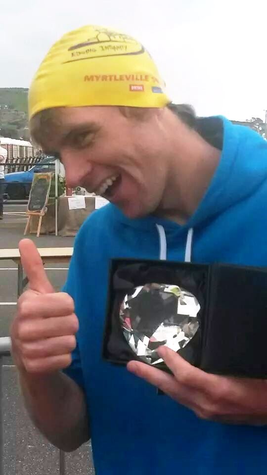 As previously recorded on this site, James Slowey has an occasional tendency to leave the water and do some land-based endurance work. As he set off down Kerry way on Friday, he was challenged by various parties to either do a quick swim in the middle of his 50 mile jaunt around the Dingle Ultra-Marathon, or at least wear his Myrtleville hat on the podium. We had complete confidence he’d be on it 🙂