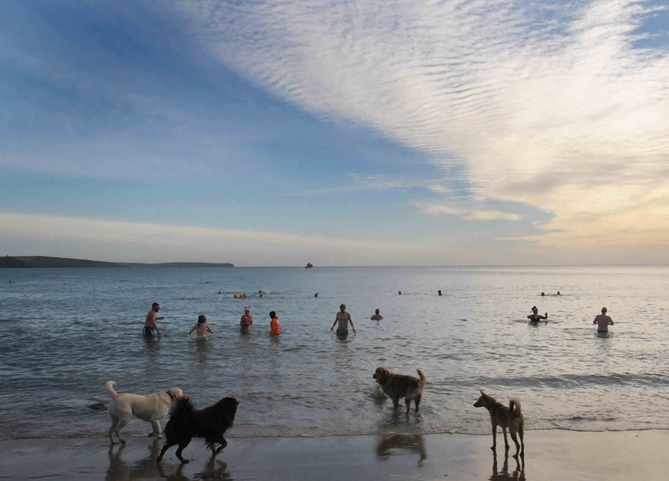 In fairness, this crowd know how to make an entrance and we can take their lead. No more wandering down the slip and on to the beach. We’ll form up for parade by the boathouse and march into the sea. Class.