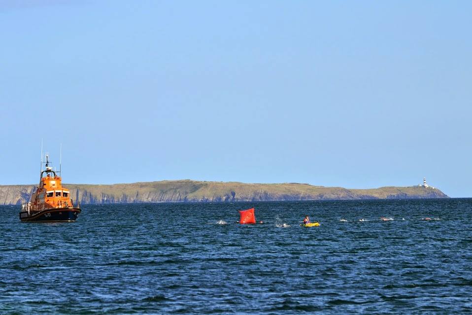 Ned Denison is in the picture too. Ned has yet to win the premier event in the Irish OWS calendar – the Church Bay swim, of course – and he can’t hurl (no touch).