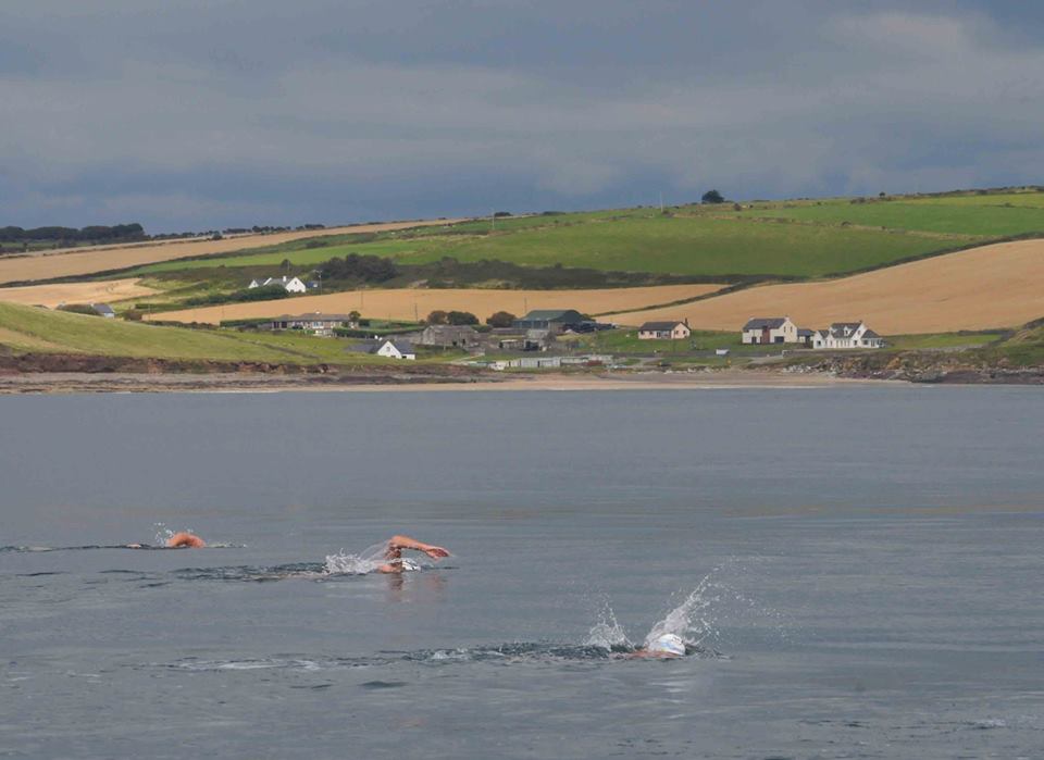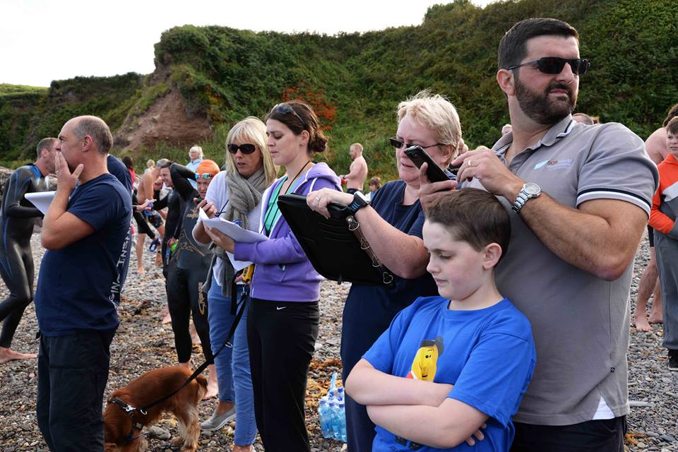 Sometimes it’s an eye-opener what has to be done behind the scenes – Gary and Peter Frost didn’t know that between the start in Myrtleville and arrival of the first swimmer in Church Bay, 101 sets of gear had to be carried down the Church Bay slope to the beach. It’s a busy twenty minutes. Good training for them both and great help from Peter and several others as Mr. Middleton unloaded the Centra van 🙂