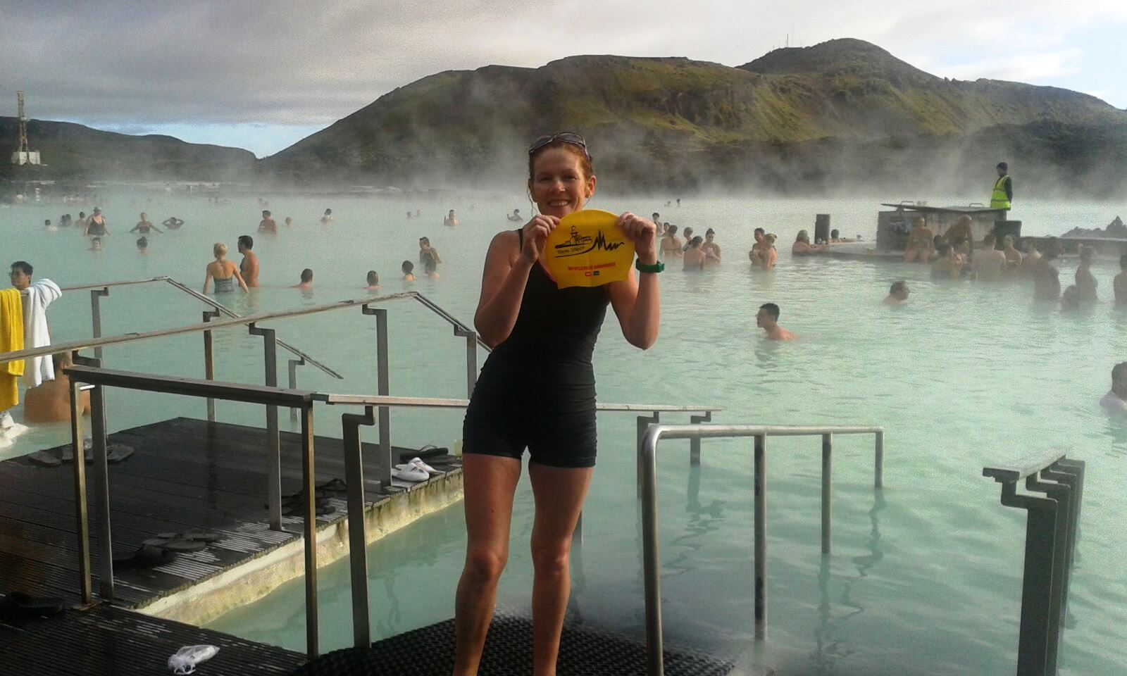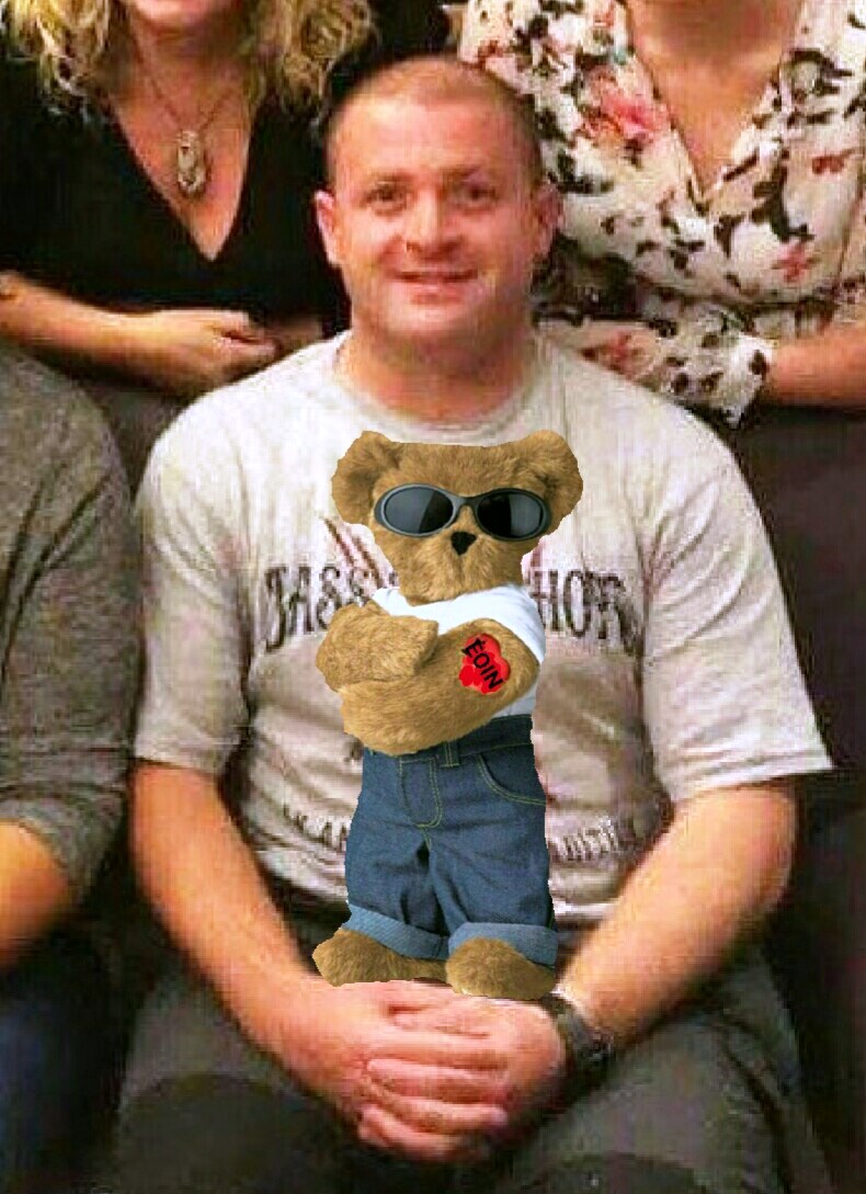 While all of the ladies on the team were happy with the choice, strenuous objections were raised by the lone “gentleman”, Eoin Lowry. Eoin insisted that his teddy, Patso, was a far more suitable choice as mascot. (Patso is named after Eoin’s brother, Pat and Eoin briefly renamed him Fatso when Pat wasn’t doing much training last year. However, Pat has gone back to work for his next Ironman, so it’s Patso again.) Here’s Eoin with Patso.