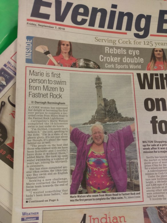 It’s been a while since we’ve taken note of the many journeys The Hat is taking. Last week I visited d’Island down West to give them some moral support. I was delighted to see two swimmers emerging from the water at the slip wearing green Myrtleville hats. Great to see our #supporttheweakercounties initiative in action.