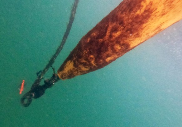It has been noted by a small picky, picky, picky few of the thousands of satisfied buoy-lappers that the underside or nether regions of the new buoys are not as sparkly clean as when they were first installed. These dirty bottoms are, apparently, causing a degree of discomfort for these picky (×3) swimmers. They (the picky ones) feel that the entirely natural and expected build up of weed and – dare one say – slime on the underside of the buoys is lowering the tone of the Myrtleville experience on their Insta stories.