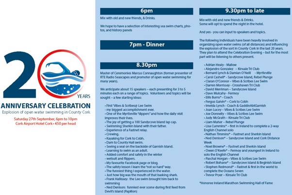 The first 28 have registered: a few solos and other “pods of swimmers” did a collection and bought tables.
