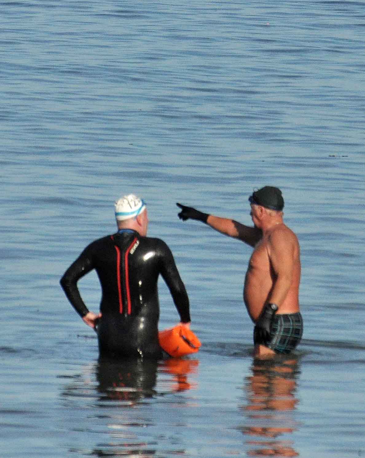 Tom McCarthy observes: “I would say that getting hit by a boat is the greatest danger that an open water swimmer can face. We have heard many stories in recent days of near misses. One of the primary rules of the sea is to maintain a proper lookout by both sight and sound. Alas, all too often a proper lookout is not maintained. Added to this is the poor “target” that a swimmer gives to others, with only part of the head and arms showing. This then can also be hidden by even a small wave. High visibility swim cap and especially towing an inflatable buoy give a far better chance of being sighted. Worn properly, these will not interfere with your swimming in any way. It is also a duty of the swimmer to be aware of the other activity going on around and wearing ear plugs will diminish your ability to hear an oncoming boat. Keep a good lookout yourself.”