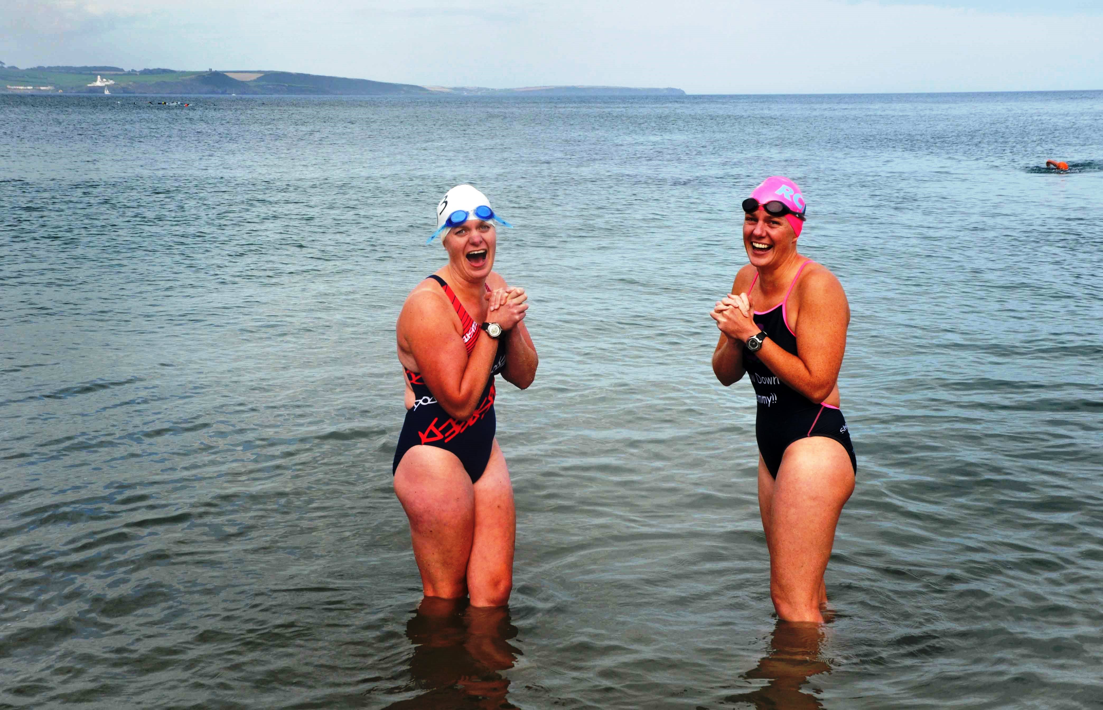 The red-head convention is under way shortly in Crosshaven, but Joleen Cronin still has to get her work done for her first attempt at the Crosshaven Triathlon on September 7th. She’s pictured below with fellow first-timer, Clodagh Monks and our intrepid photographer, Siobhan. 150 individuals and 60 teams are entered and entries are closed. Another fantastic effort by all concerned.